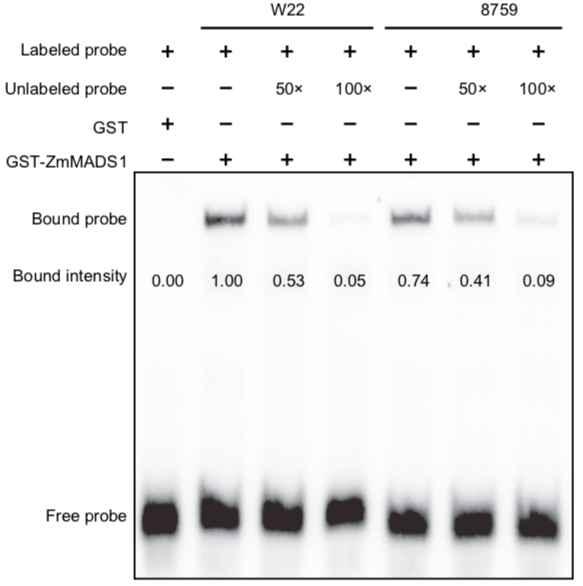 該研究采用BeaverBeadsTMGSH(70601)純化GST標(biāo)記的ZmMADS1進(jìn)行后續(xù)分析,發(fā)現(xiàn)SNP-1245作為順式作用元件通過影響上游基因ZmMADS1與ZCN8的結(jié)合來調(diào)控ZCN8的表達(dá)。在玉米向高山地區(qū)散播過程中,來自近緣祖先種(Zea mays ssp. mexicana)的另一個早開花自然變異雜交滲入進(jìn)SNP-1245早開花單倍型中,從而幫助玉米適應(yīng)溫帶環(huán)境。該研究不僅首次提出了玉米花期適應(yīng)過程中單個基因的逐步進(jìn)化機制,也揭示了近緣種的基因滲入對提高玉米適應(yīng)性的重要作用。